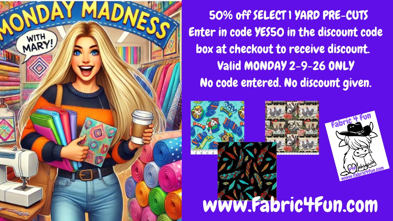 WATCH Tuesday with Tonya videos HERE!A NEW video from me, Tonya, every Tuesday! See what we are up to at the shop, check out they WHY and the WHAT and come along with us on this journey as we build our Fabric 4 Fun family!