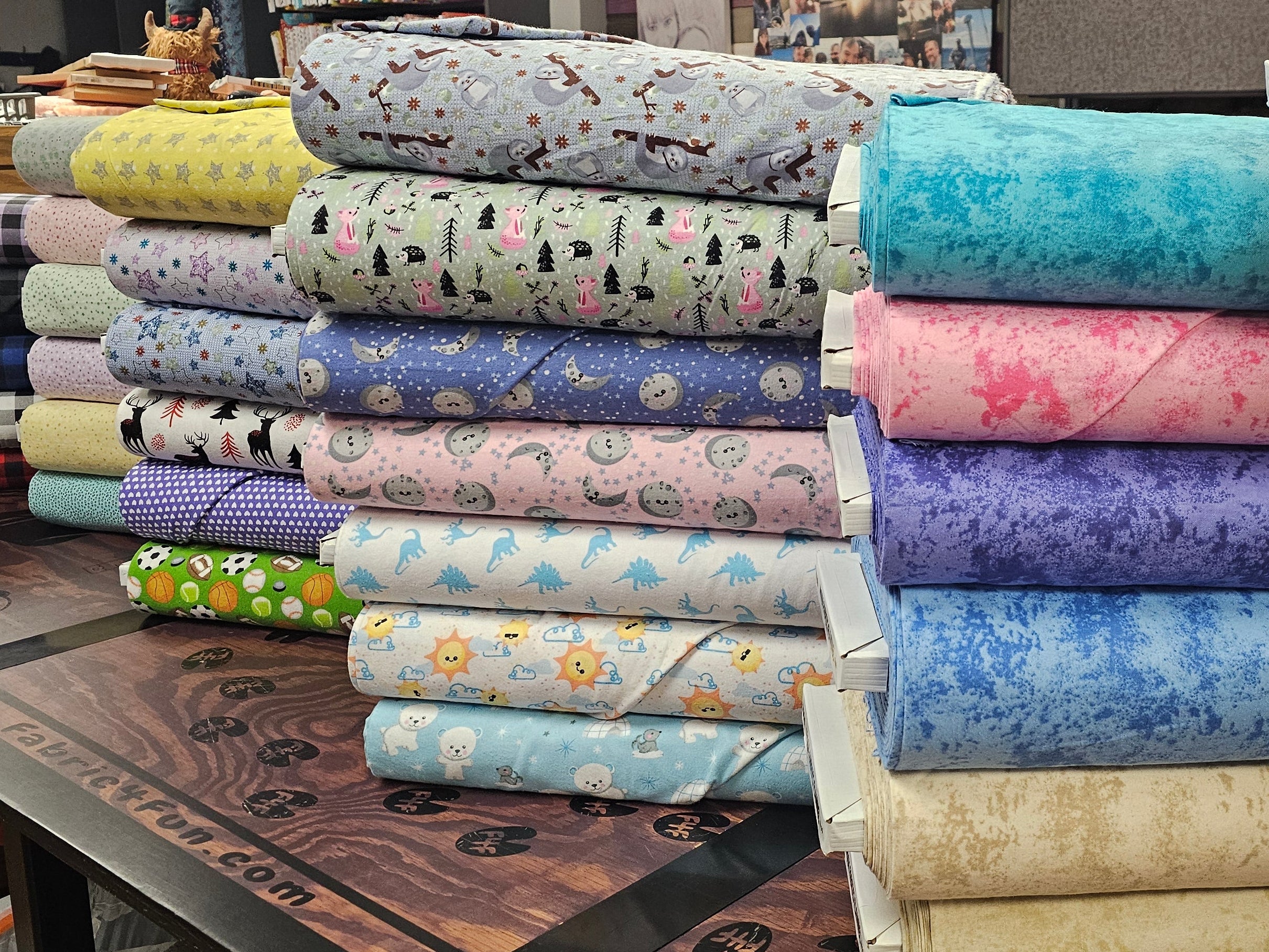 Check out over 50 prints to choose from for only $5/yard! OR ...... remember MOOre fabric = MOOre fun as Stash likes to say and get the whole 8 yard bolt for only $35 or a 10 yard bolt for only $45!