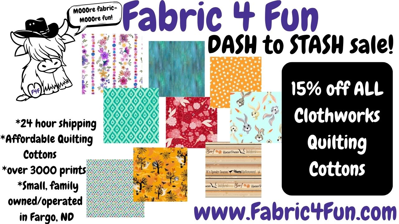 Hurry and DASH to fill your STASH! 15% off ALL Clothworks Quilting Cottons!