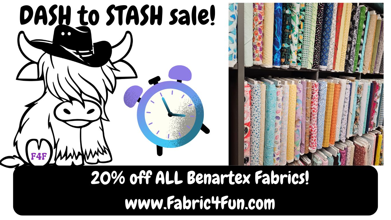 SHOP BENARTEX FABRICS HEREHurry and DASH to fill your STASH! 20% off ALL Benartex Quilting Cottons!
