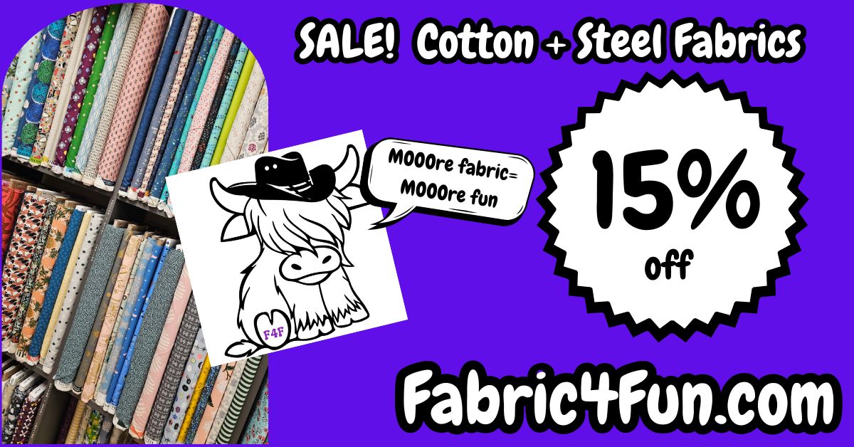 Shop HERE for Cotton+Steel Fabrics15% off your ONLINE order of COTTON+STEEL FABRICS when you enter CS1515 in the discount code box at checkout.