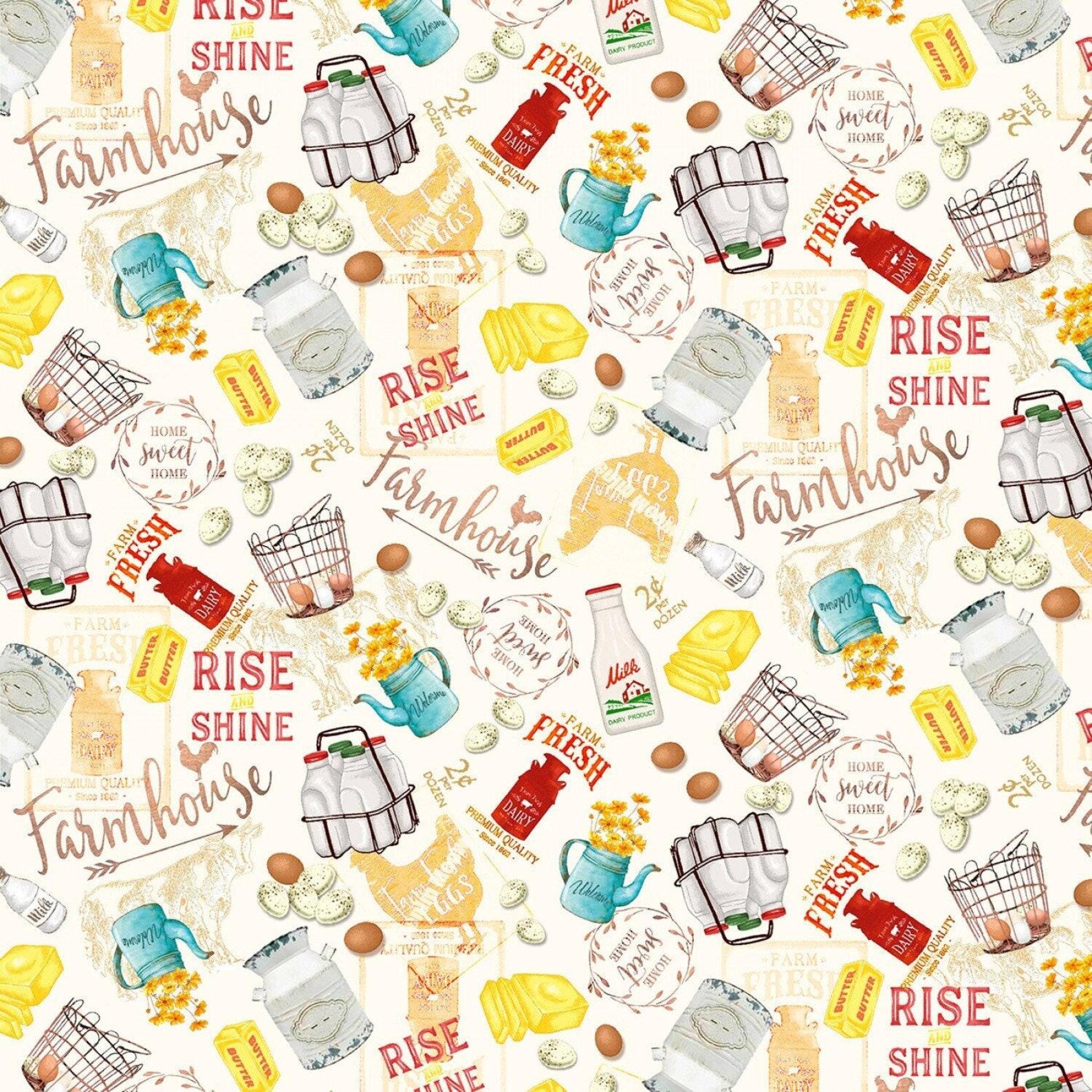 8269 Timeless Treasures Farm Fresh Farmhouse Text & Imagery Cream FARM-CD1534