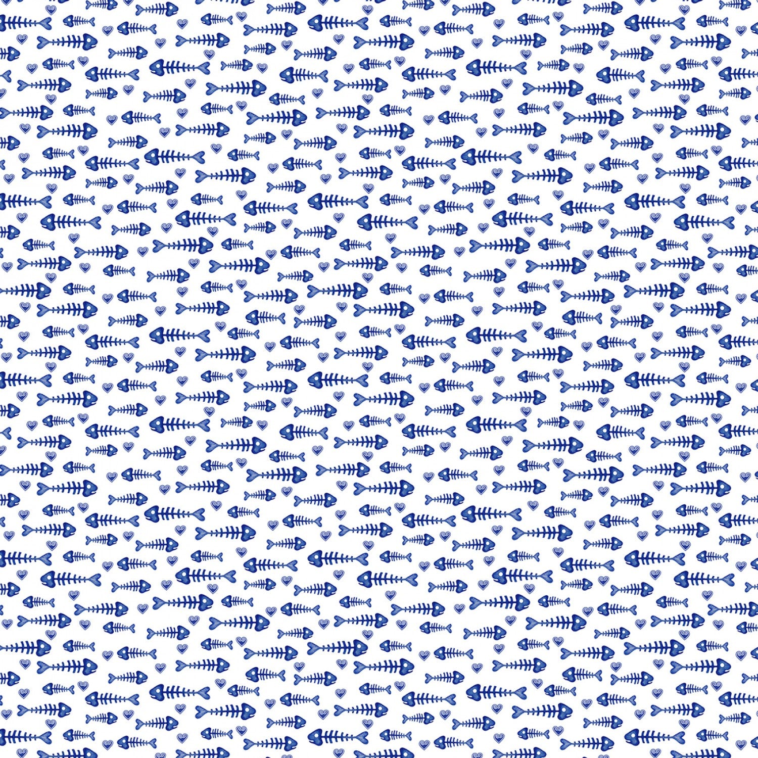 8687 Benartex Designer Fabrics Kitty City Fish Bones White 12472-09