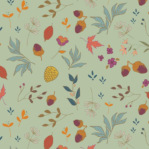 Art Gallery Fabrics Autumn Vibes Acorns and Pinecones Mint Laurel Green