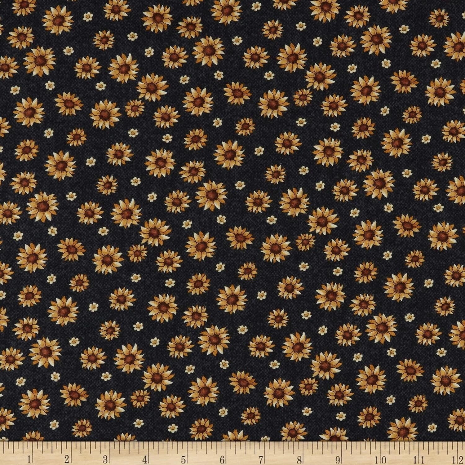 Benartex A Wooly Autumn Autumn Flowers Black 13057-12 (1015)