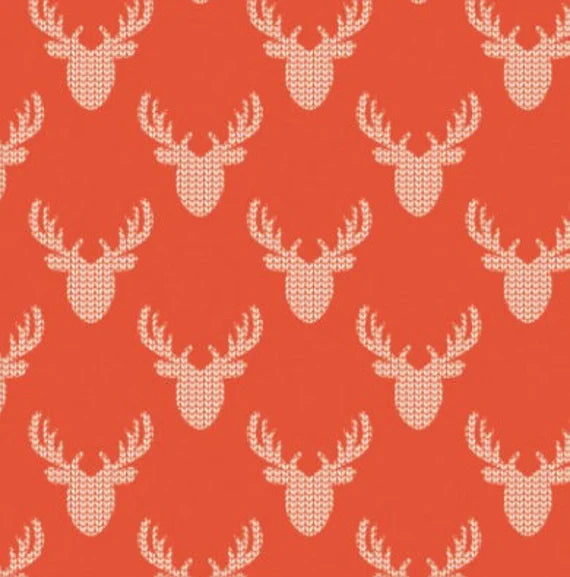 Camelot Fabrics Reindeer Lodge Collection Knit Look Deer in Red 21191705-01