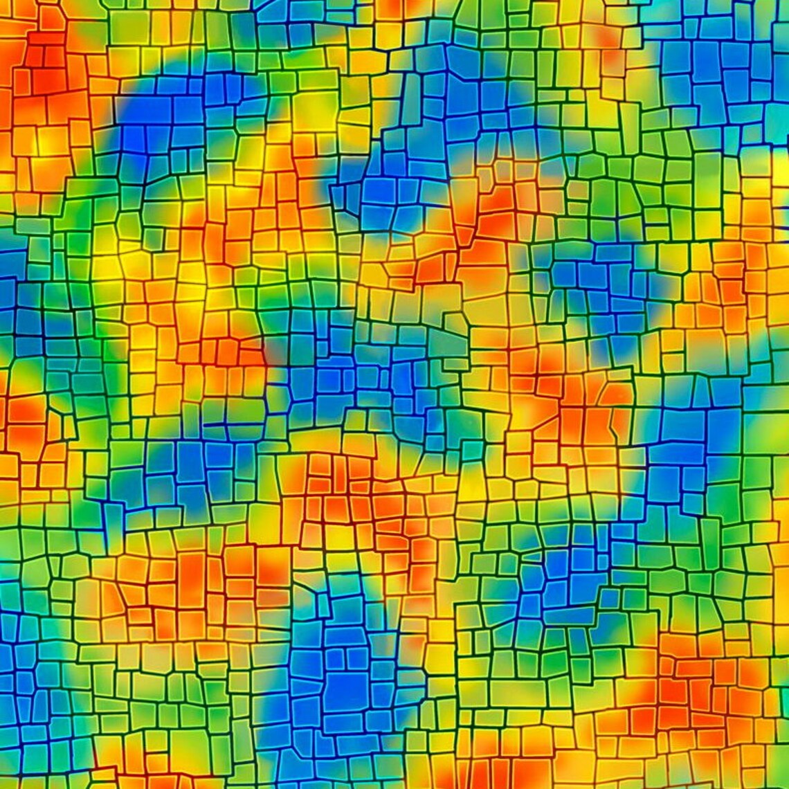 QT Fabrics A Child's Prayer Yellow, Orange, Green, & Blue Ombre Tiles