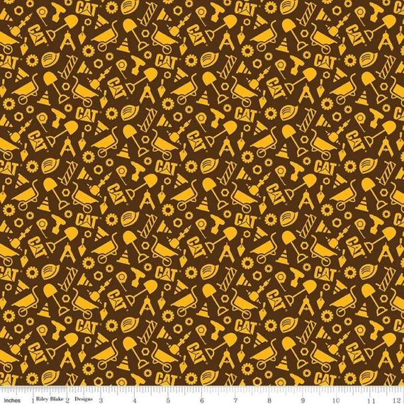 Riley Blake CAT Buildin' Crew Construction Set Brown C8103
