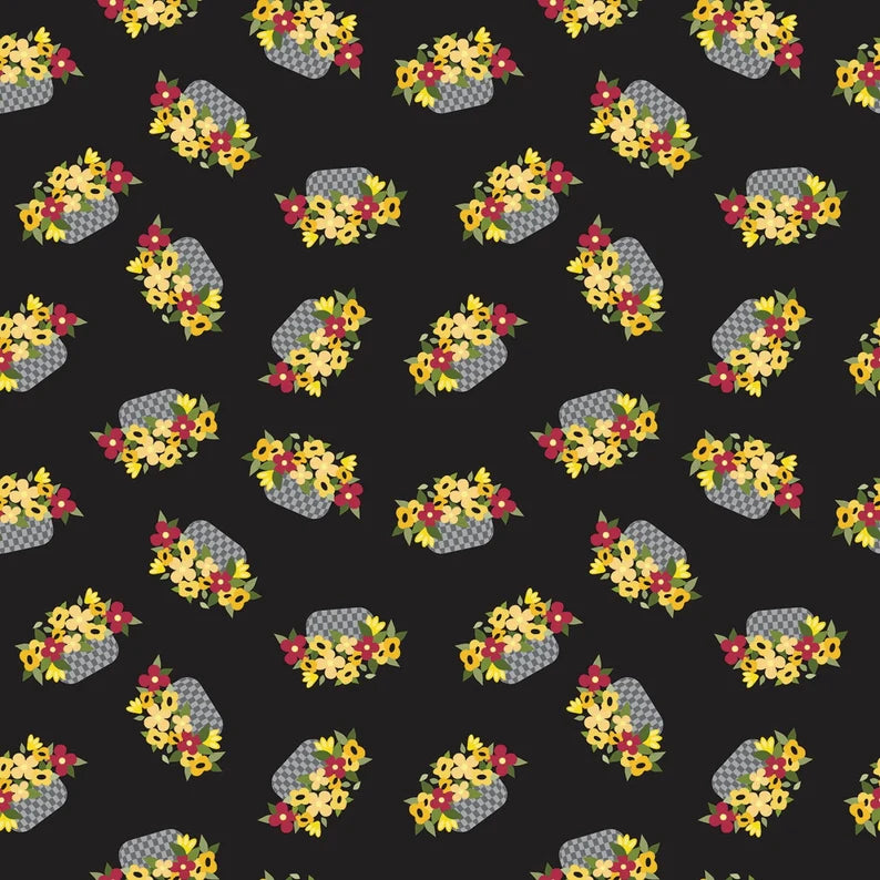 Riley Blake Petals & Pedals Flower Baskets C11141 Black